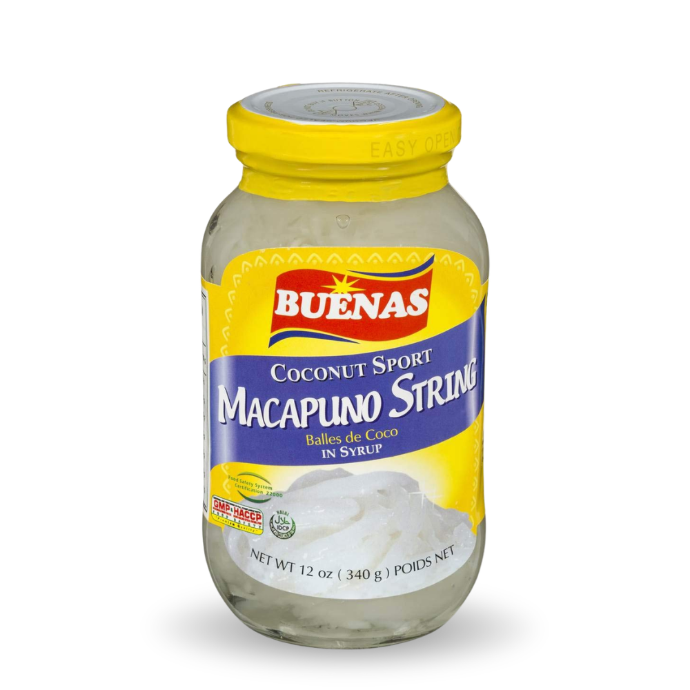 Gata de consum și ideal de servit rece, Macapuno String este potrivit ca desert simplu, topping pentru înghețată sau ingredient în prăjituri și băuturi exotice. Preparat din ingrediente atent selecționate, în sirop ușor, acest desert aduce pe masa ta savoarea autentică a Filipinelor.